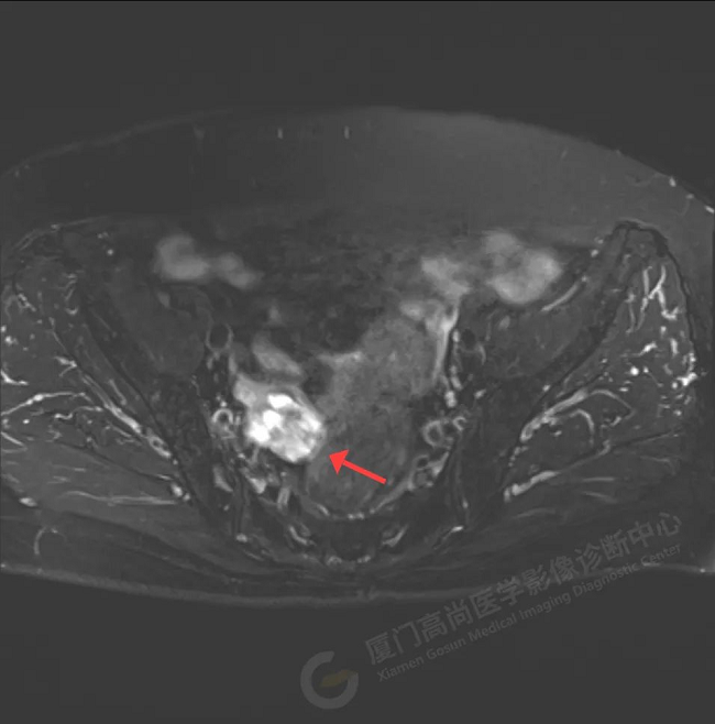 60歲的吳阿姨來廈門高尚健康體檢進行體檢,腫瘤標志物檢查:糖基抗原125(Ca125):124.94U/ML【參考值:≤35.00】,主檢醫(yī)師建議她做盆腔磁共振平掃增強進一步檢查。