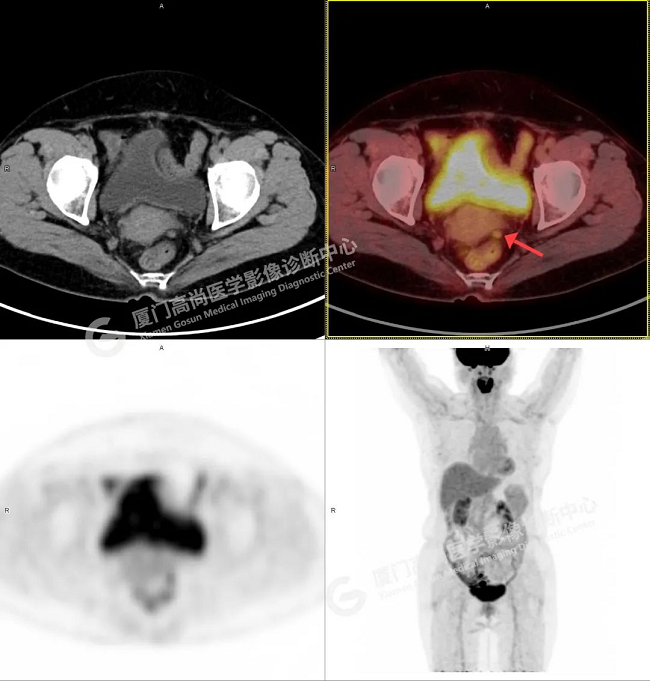 2、子宮直腸陷凹內多發(fā)腫大淋巴結,代謝不同程度增高,考慮為轉移。